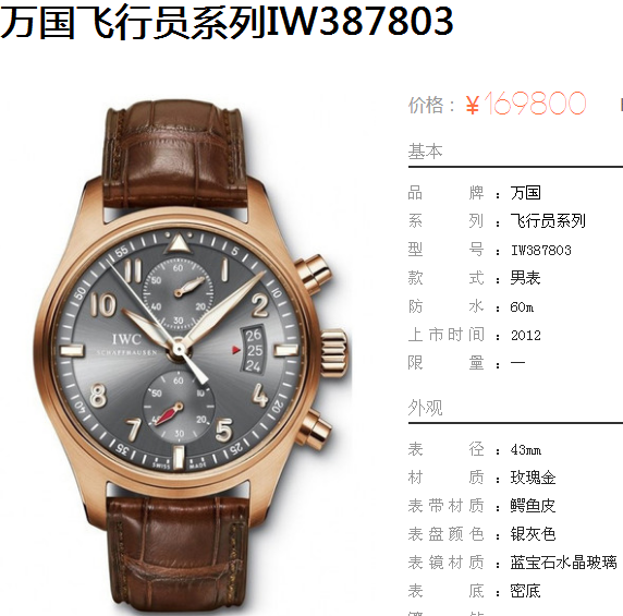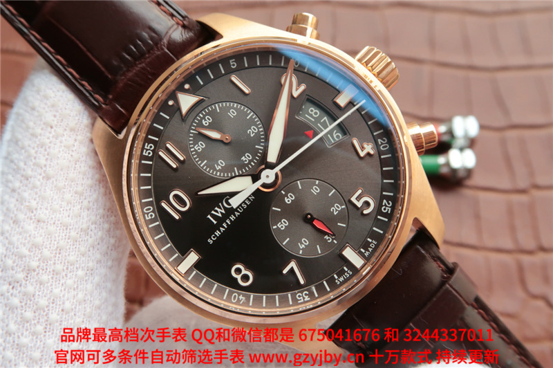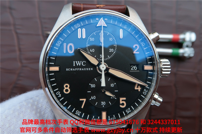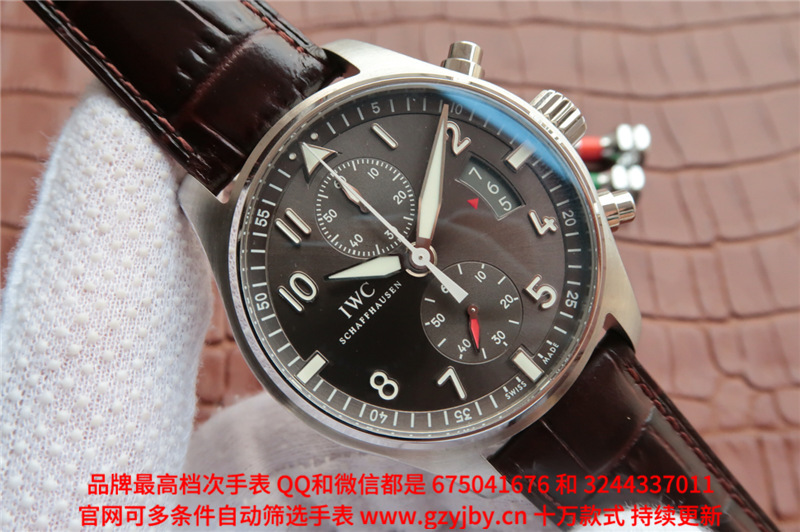 白2400金加100,万国飞行员系列,全自动械表,直径43厚15.5毫米,日历,夜光,跑秒计时,采用仿瑞士机CAL.89365,蓝宝石镜面+蓝膜,精钢表壳皮带,防水100米,带全套高档包装发票鉴定书等等,包邮,保修5年,质量可靠。如需深入了解,请带图咨询客服。提供专业参考意见!