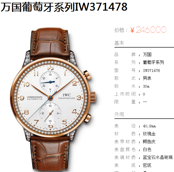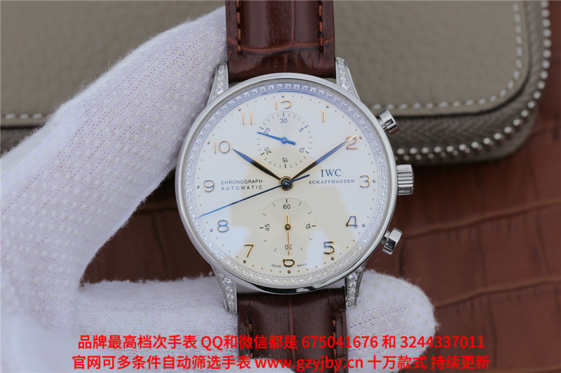 白2300金加100,万国葡萄牙系列,V7女款葡计,全自动械表,直径40.9厚12.3毫米,跑秒计时,采用仿瑞士机CAL.79350,蓝宝石镜面,精钢表壳皮带,防水30米,带全套高档包装发票鉴定书等等,包邮,保修5年,质量可靠。如需深入了解,请带图咨询客服。提供专业参考意见!