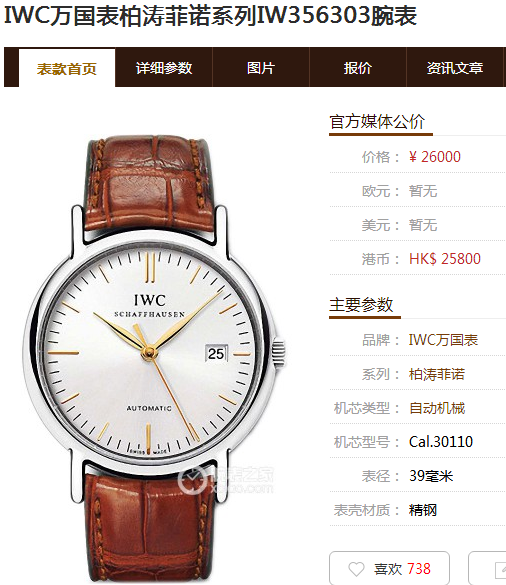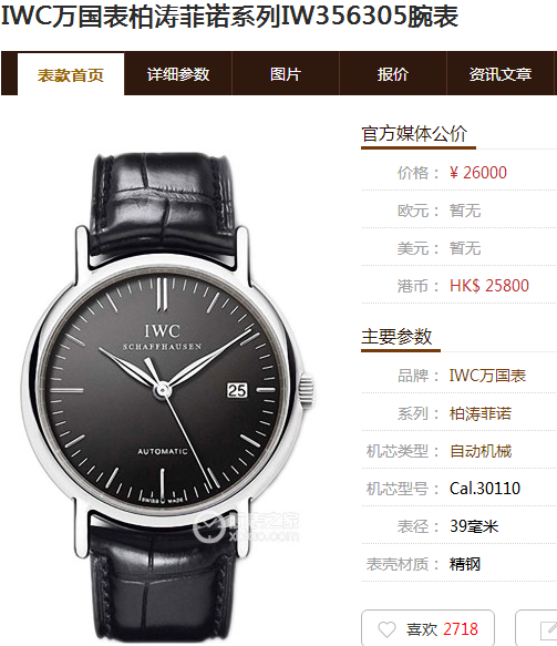 白1700金加100,万国柏涛菲诺系列,男 全自动械表,直径39厚10毫米,日历采用仿瑞士改CAL.30110,蓝宝石镜面,精钢表壳皮带,防水30米,带全套高档包装发票鉴定书等等,包邮,保修5年,质量可靠。如需深入了解,请带图咨询客服。提供专业参考意见!