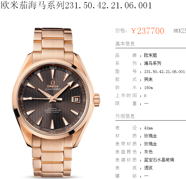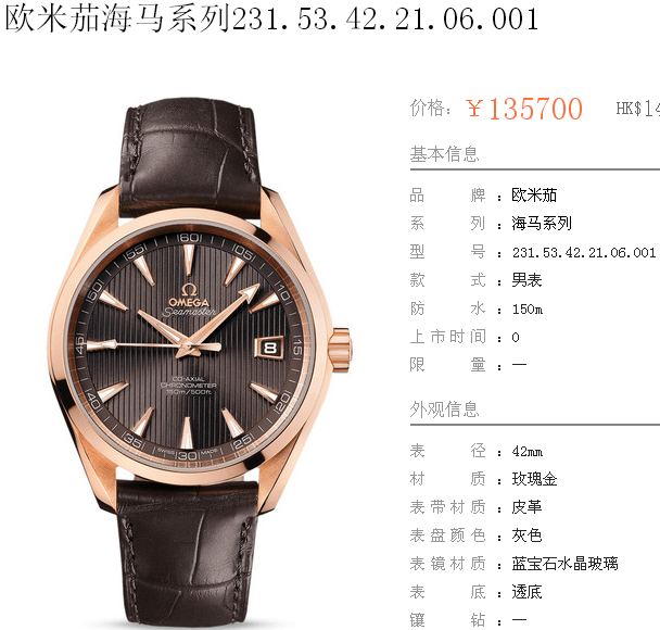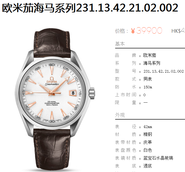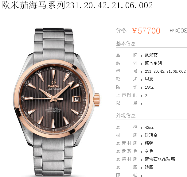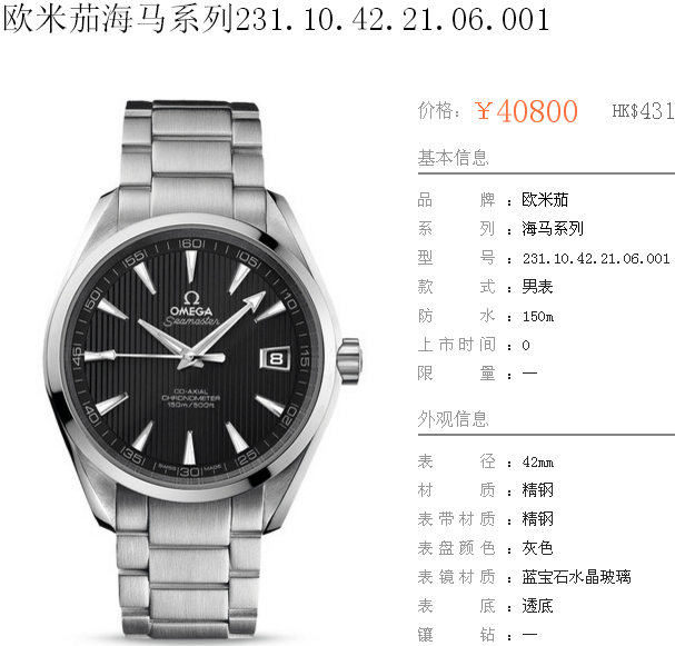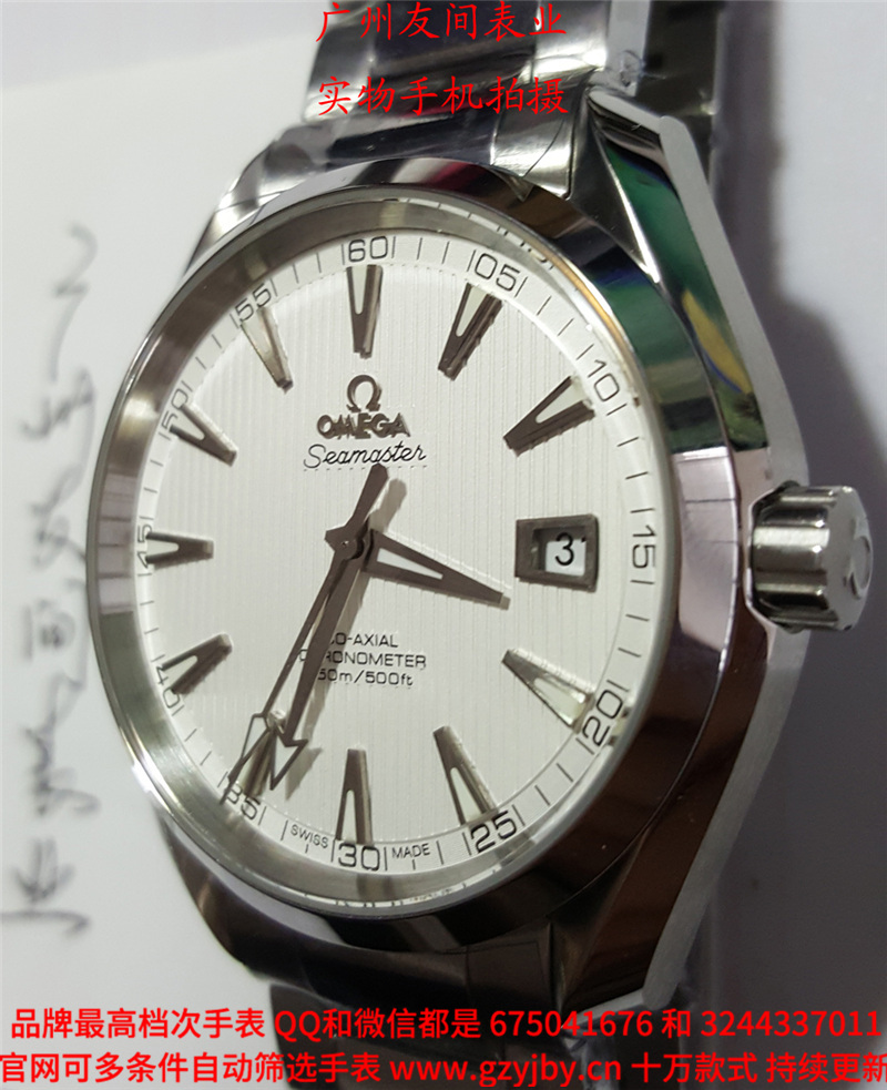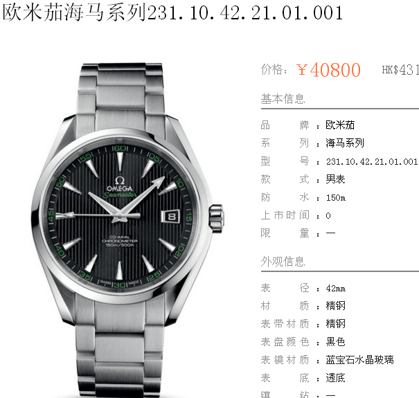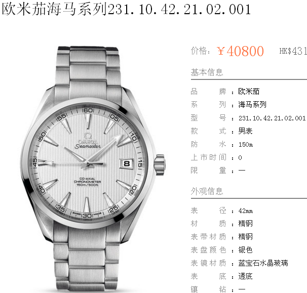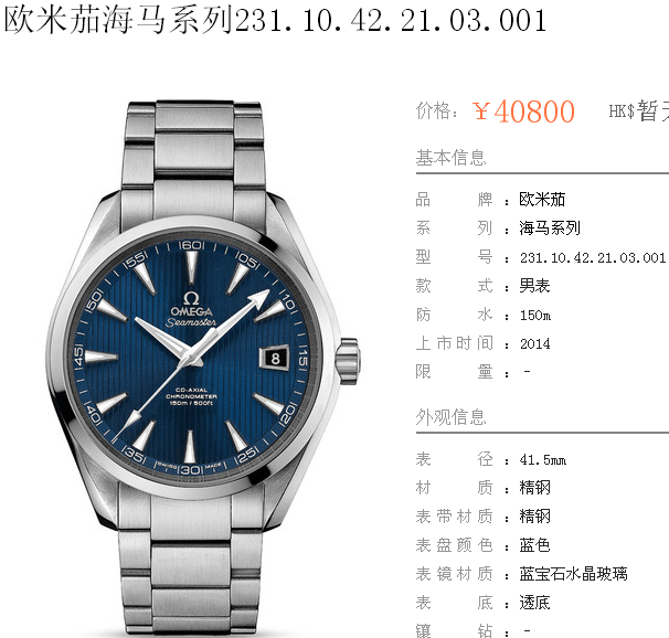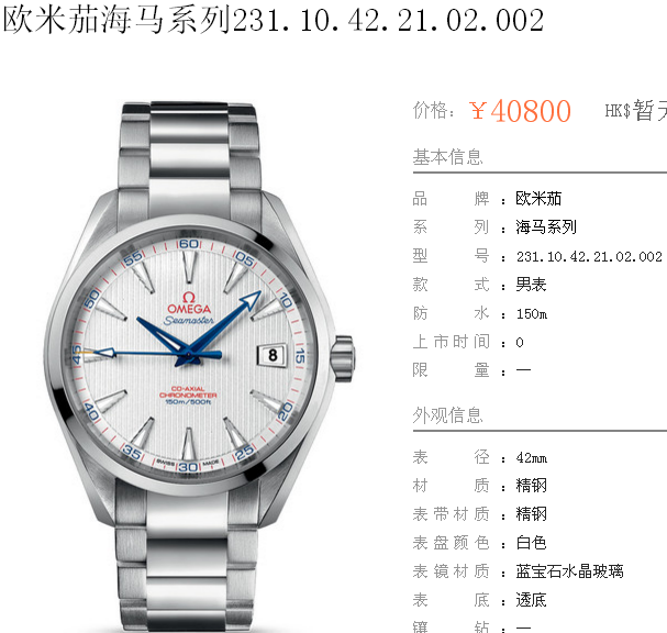 白1900金加100,(老款日历带框)欧米茄海马系列,男 全自动械表,直径41.5厚12毫米,日历,夜光。采用仿瑞士机8500,前后蓝宝石镜面,精钢表壳,钢带或者皮带,防水150米,带全套高档包装发票鉴定书等等,包邮,保修5年,质量可靠。如需深入了解,请带图咨询客服。提供专业参考意见!
