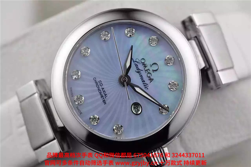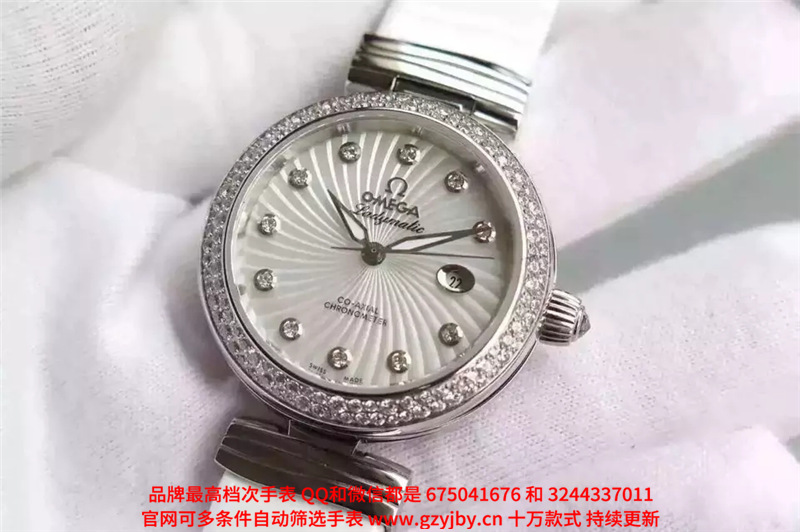 白1900钻加100,金加100。欧米茄碟飞系列鸟巢,女 全自动械表,直径34厚11毫米,日历,夜光。采用瑞士进口高级机8520,前后蓝宝石镜面,精钢表壳,钢带或者皮带,防水100米,带全套高档包装发票鉴定书等等,包邮,保修5年,质量可靠。如需深入了解,请带图咨询客服。提供专业参考意见!客服联系QQ:675041676 ,微信同号!
