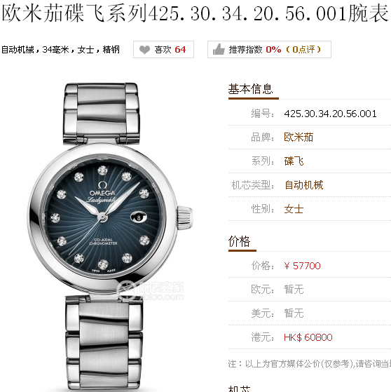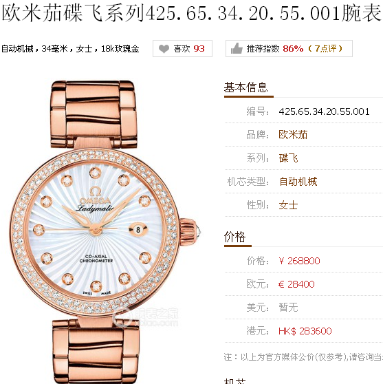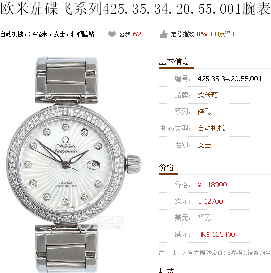 白1800钻加100,金加100。欧米茄碟飞系列鸟巢,女 全自动械表,直径34厚11毫米,日历,夜光。采用仿瑞士机8520,前后蓝宝石镜面,精钢表壳,钢带或者皮带,防水100米,带全套高档包装发票鉴定书等等,包邮,保修5年,质量可靠。如需深入了解,请带图咨询客服。提供专业参考意见!