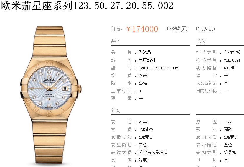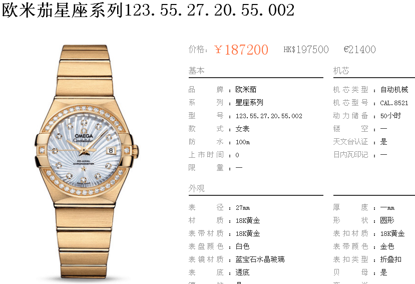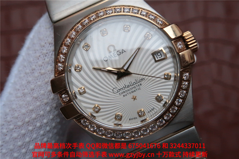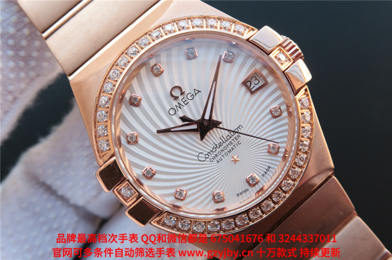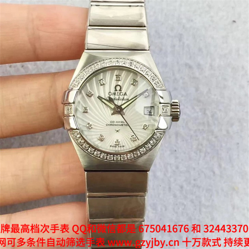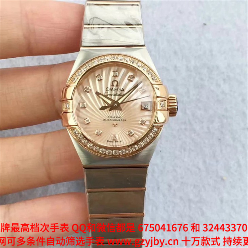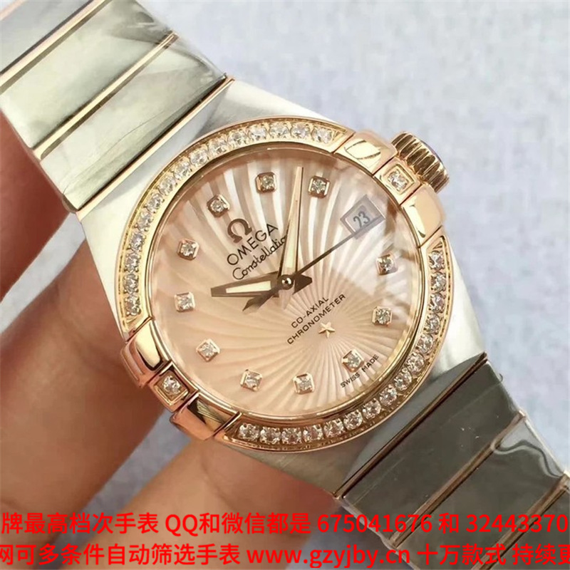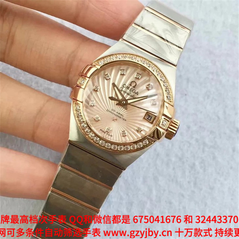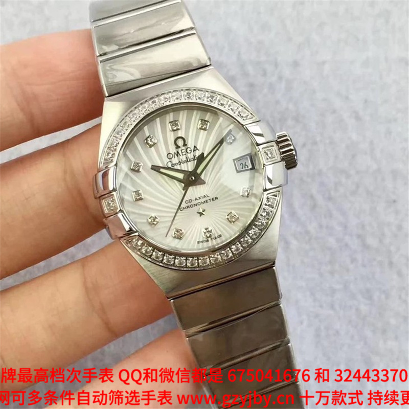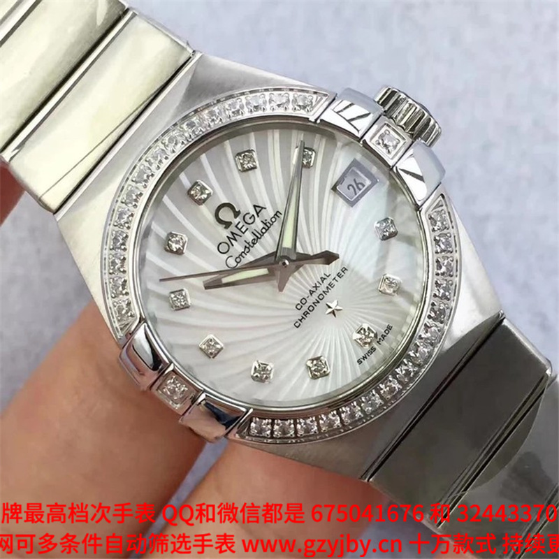 白1700金加100,欧米茄星座系列,女 全自动械表,直径27厚13毫米,日历,夜光。采用仿瑞士机8520,前后蓝宝石镜面,贝母字面,精钢表壳,钢带,防水100米,带全套高档包装发票鉴定书等等,包邮,保修5年,质量可靠。如需深入了解,请带图咨询客服。提供专业参考意见!
