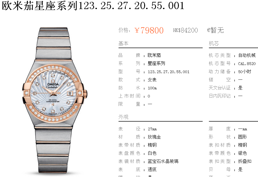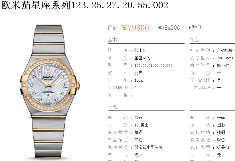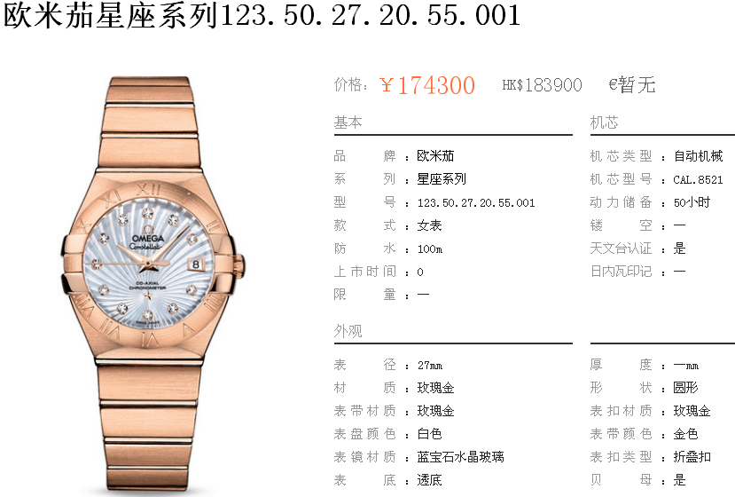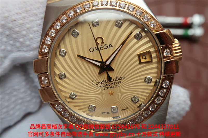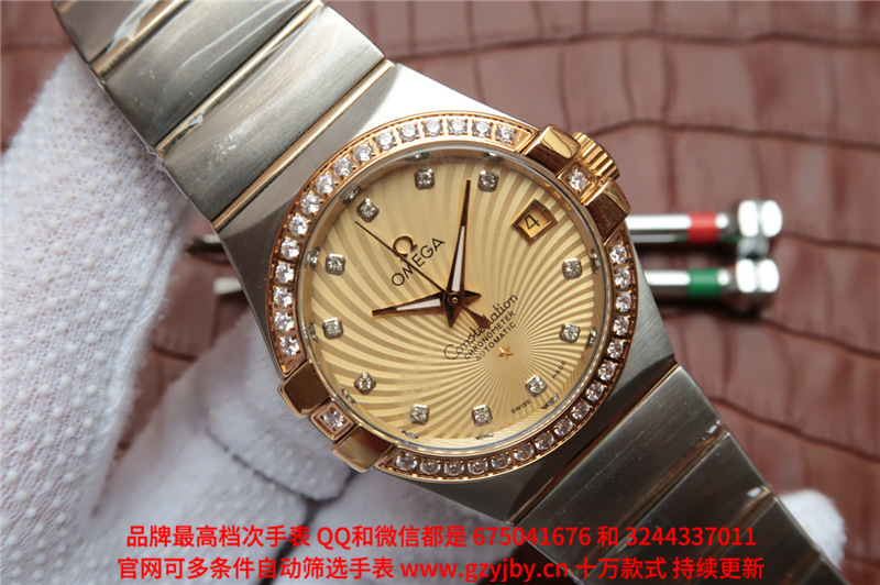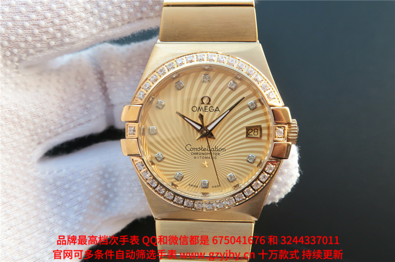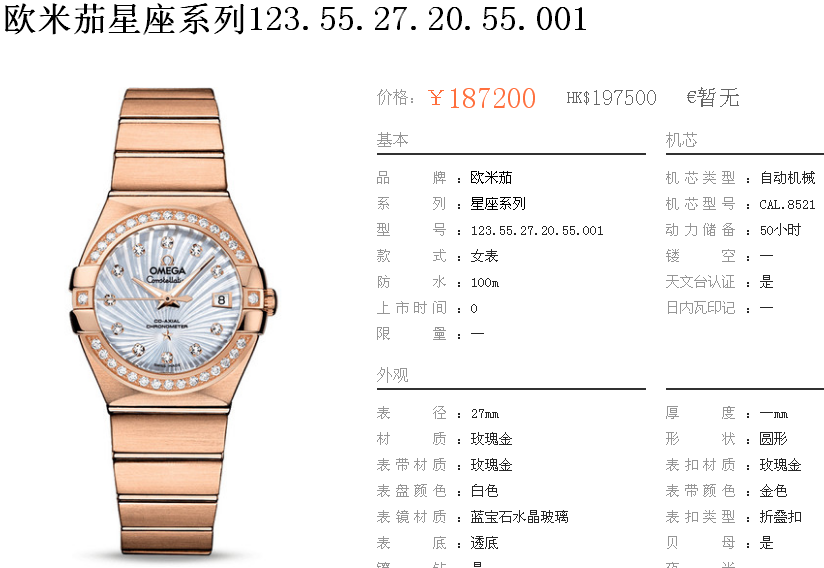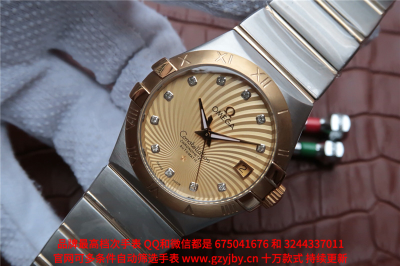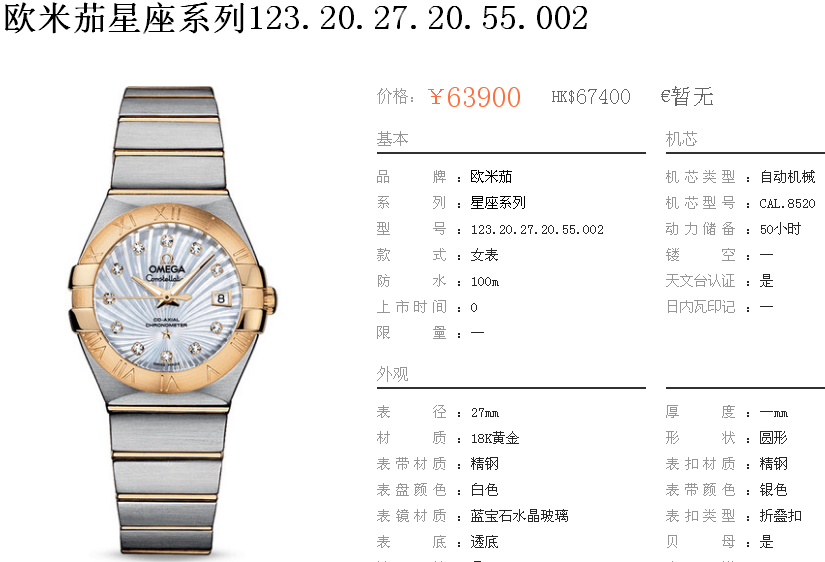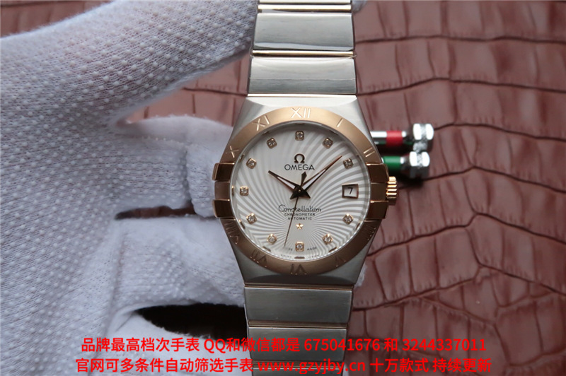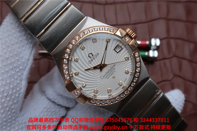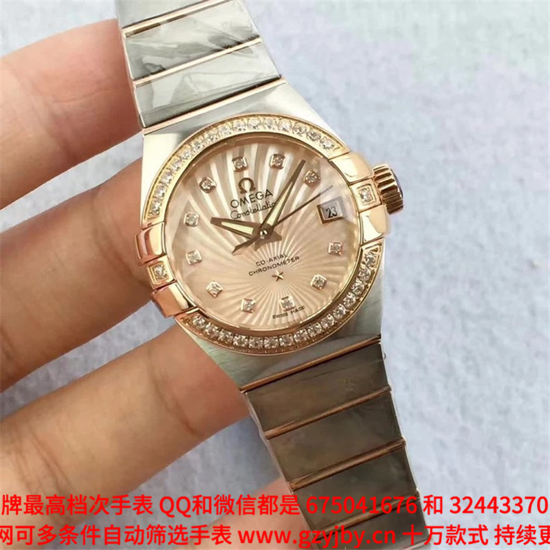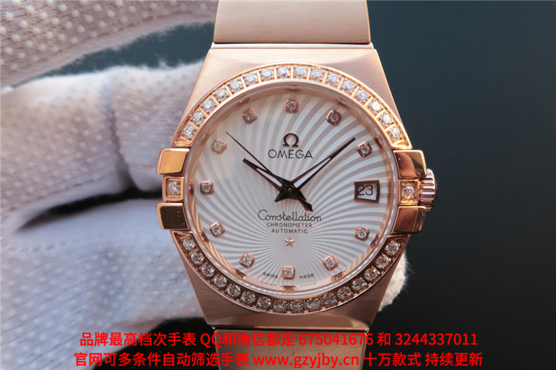 白1700金加100,欧米茄星座系列,女 全自动械表,直径27厚13毫米,日历,夜光。采用仿瑞士机8520,前后蓝宝石镜面,贝母字面,精钢表壳,钢带,防水100米,带全套高档包装发票鉴定书等等,包邮,保修5年,质量可靠。如需深入了解,请带图咨询客服。提供专业参考意见!