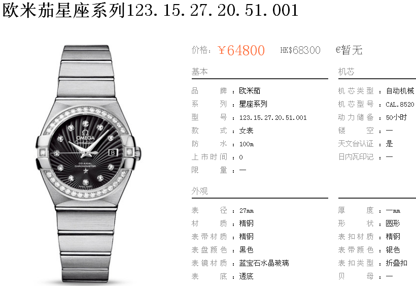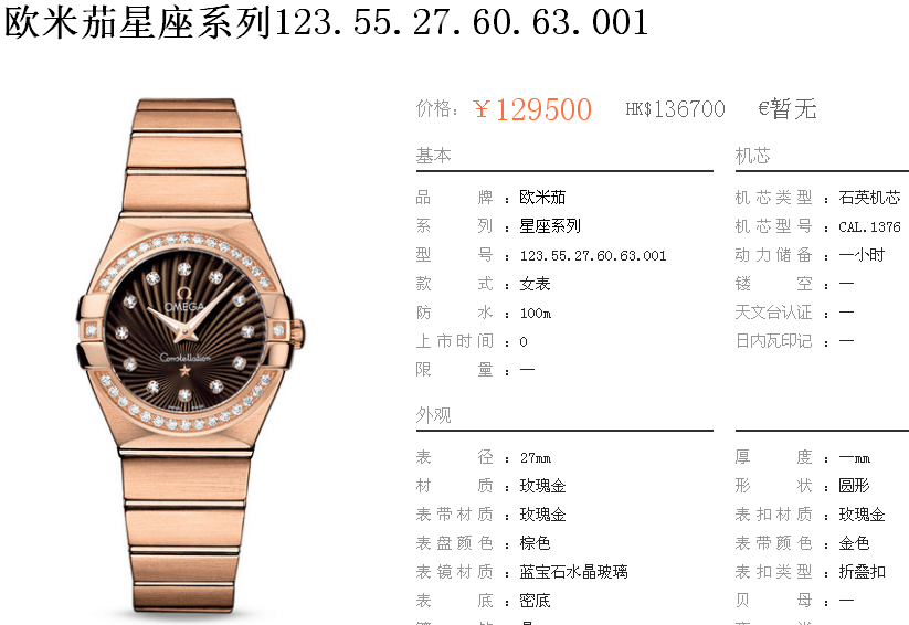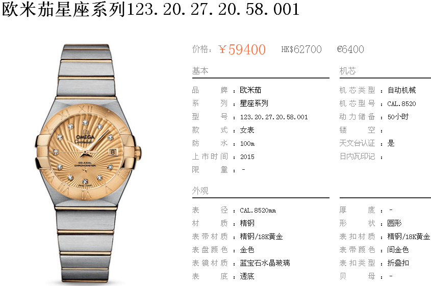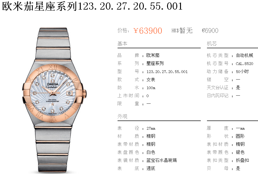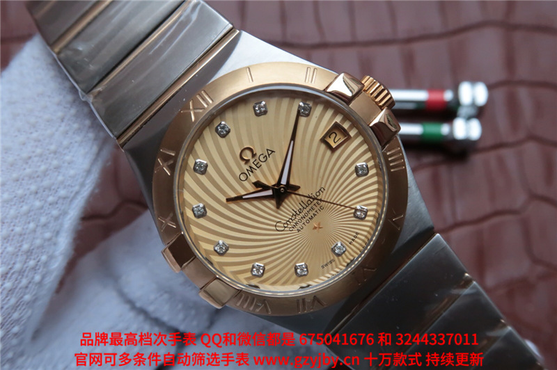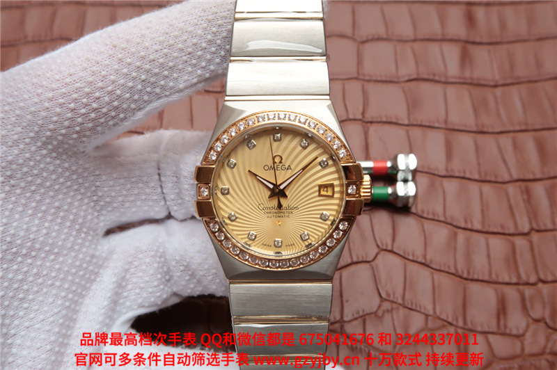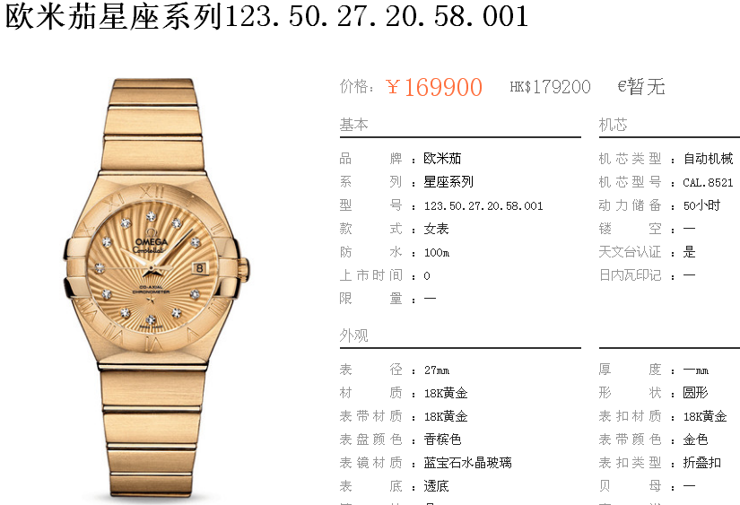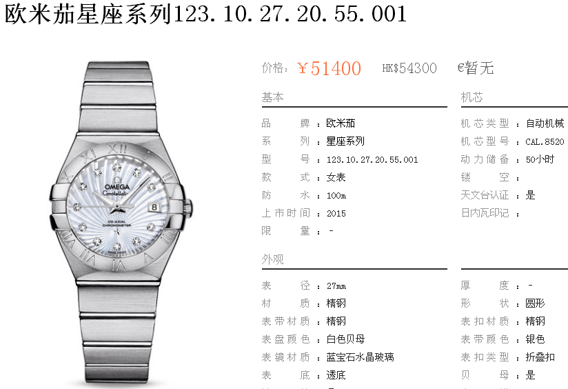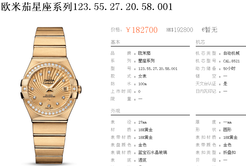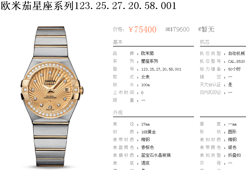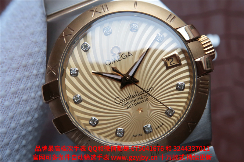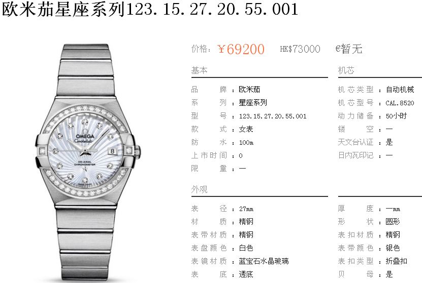 白1700金加100,欧米茄星座系列,女 全自动械表,直径27厚13毫米,日历,夜光。采用仿瑞士机8520,前后蓝宝石镜面,贝母字面,精钢表壳,钢带,防水100米,带全套高档包装发票鉴定书等等,包邮,保修5年,质量可靠。如需深入了解,请带图咨询客服。提供专业参考意见!