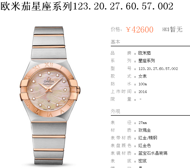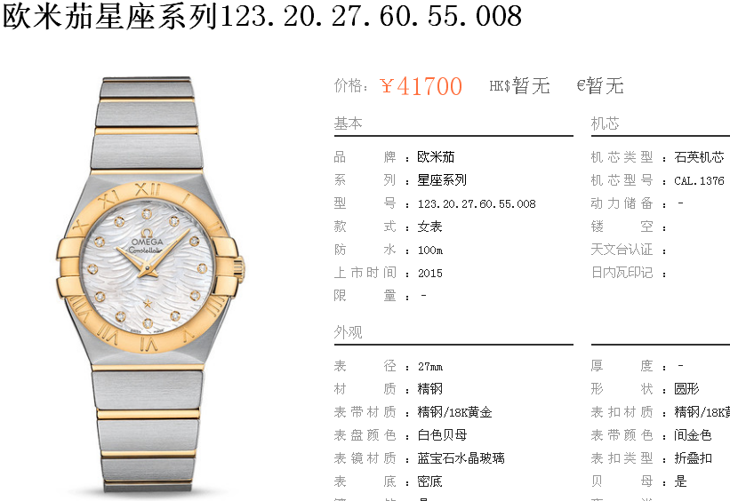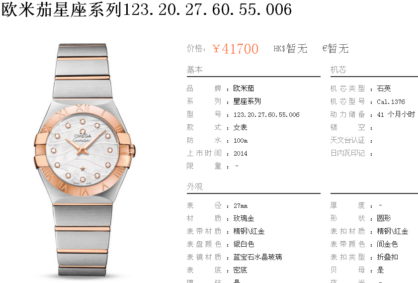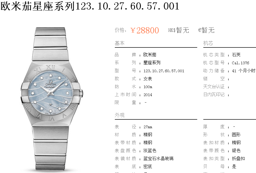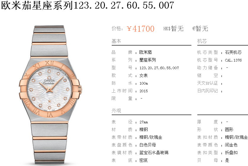 白900金加100,欧米茄星座系列,女 石英表,直径27厚11毫米,夜光。采用仿瑞士机芯1376,蓝宝石镜面,贝母字面,精钢表壳,钢带,防水100米,带全套高档包装发票鉴定书等等,包邮,保修5年,质量可靠。如需深入了解,请带图咨询客服。提供专业参考意见!