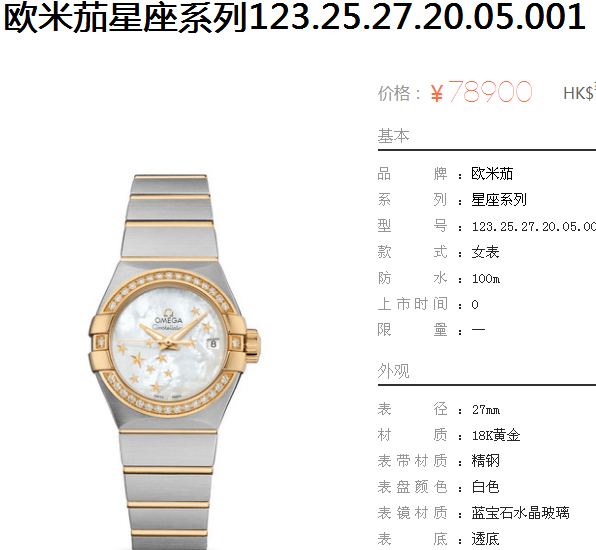 金1000钻加100,欧米茄星座系列,女 石英表,直径27厚11毫米,夜光。采用仿瑞士机芯1376,蓝宝石镜面,精钢表壳,钢带,防水100米,带全套高档包装发票鉴定书等等,包邮,保修5年,质量可靠。如需深入了解,请带图咨询客服。提供专业参考意见!