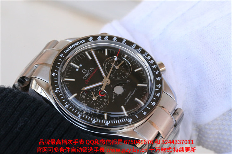 白2500金加100,欧米茄超霸系列,月相计时表,男 全自动械表,直径44厚15毫米,日历,夜光,跑秒计时,月相。采用仿瑞士机9300,前后蓝宝石镜面,精钢表壳陶瓷圈,钢带或者皮带,防水50米,带全套高档包装发票鉴定书等等,包邮,保修5年,质量可靠。如需深入了解,请带图咨询客服。提供专业参考意见!