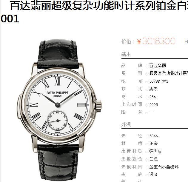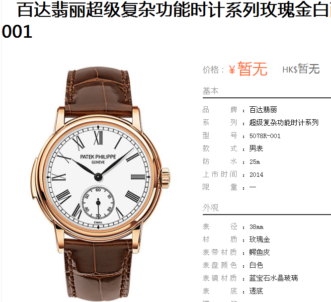 白1900金加100,百达翡丽超级复杂功能时计系列,男 手动械表,直径38厚10毫米,两针小秒。采用仿瑞士机芯R 27 PS. 前后蓝宝石镜面,精钢表壳,钢带或皮带,防水120米,带全套高档包装发票鉴定书等等,包邮,保修5年,质量可靠。如需深入了解,请带图咨询客服。提供专业参考意见!