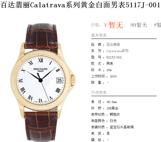 白2100金加100,百达翡丽古典表Calatrava系列,男 全自动械表,直径38厚11毫米,日历。采用仿瑞士机芯Cal.315/190. 前后蓝宝石镜面,精钢表壳,钢带或皮带,防水120米,带全套高档包装发票鉴定书等等,包邮,保修5年,质量可靠。如需深入了解,请带图咨询客服。提供专业参考意见!