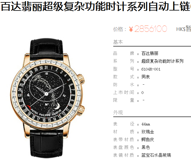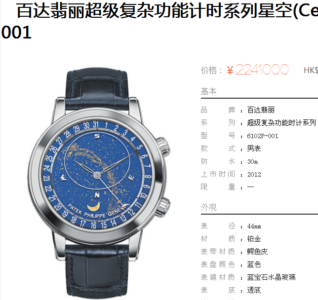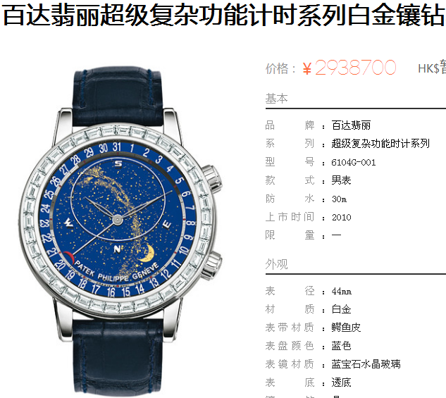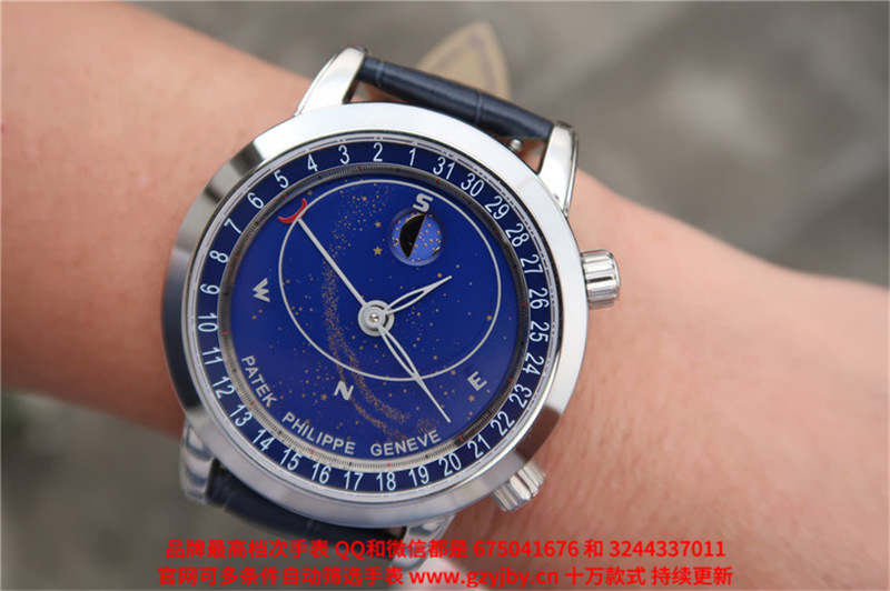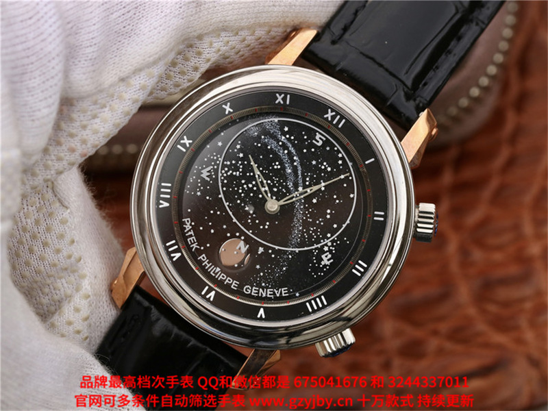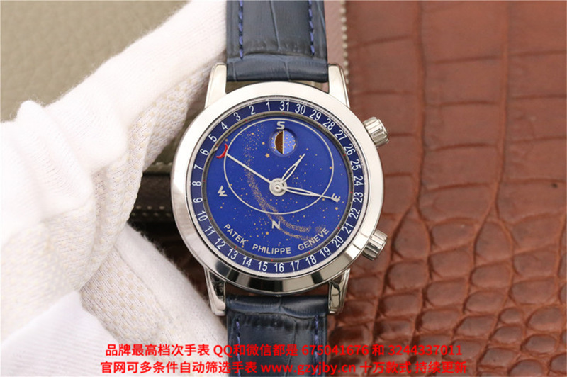 白2100金加100,百达翡丽超级复杂功能计时系列,男 全自动械表,直径44厚14毫米,2字表把调节日历 月相,5字表把调节星空盘。采用仿瑞士机芯240 LU CL C,前后蓝宝石镜面,精钢表壳,钢带或皮带,防水120米,带全套高档包装发票鉴定书等等,包邮,保修5年,质量可靠。如需深入了解,请带图咨询客服。提供专业参考意见!