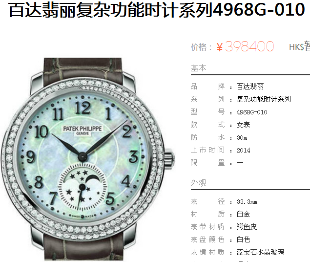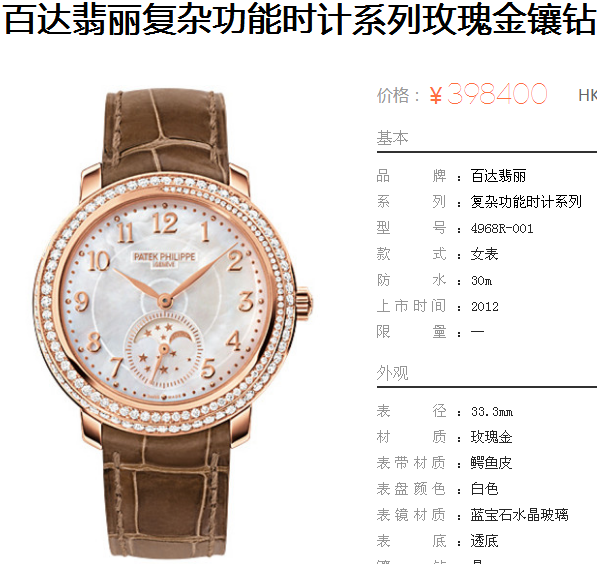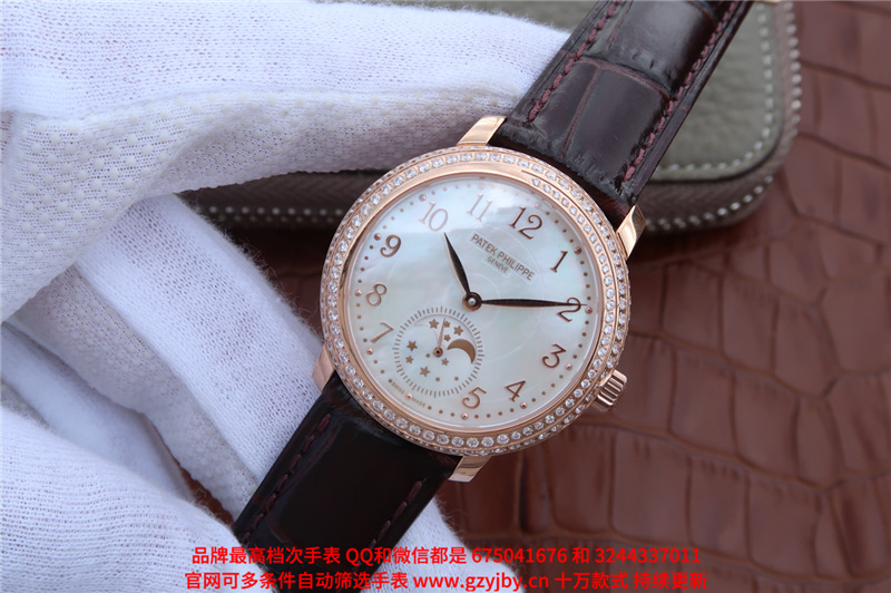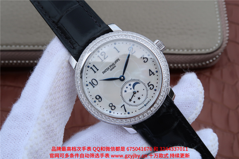 白1900金加100,百达翡丽复杂功能计时系列,女 手动动械表,直径33厚11毫米,月相。采用仿瑞士机芯215 PS LU,前后蓝宝石镜面,精钢表壳,钢带或皮带,防水120米,带全套高档包装发票鉴定书等等,包邮,保修5年,质量可靠。如需深入了解,请带图咨询客服。提供专业参考意见!