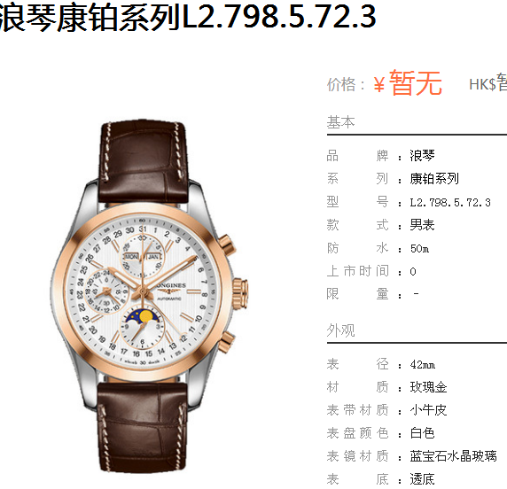 • 手表品牌:浪琴