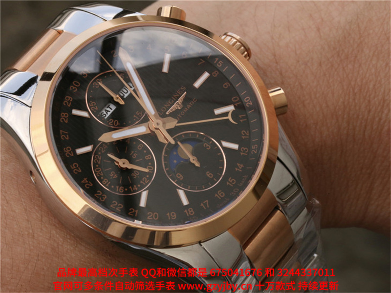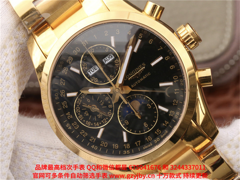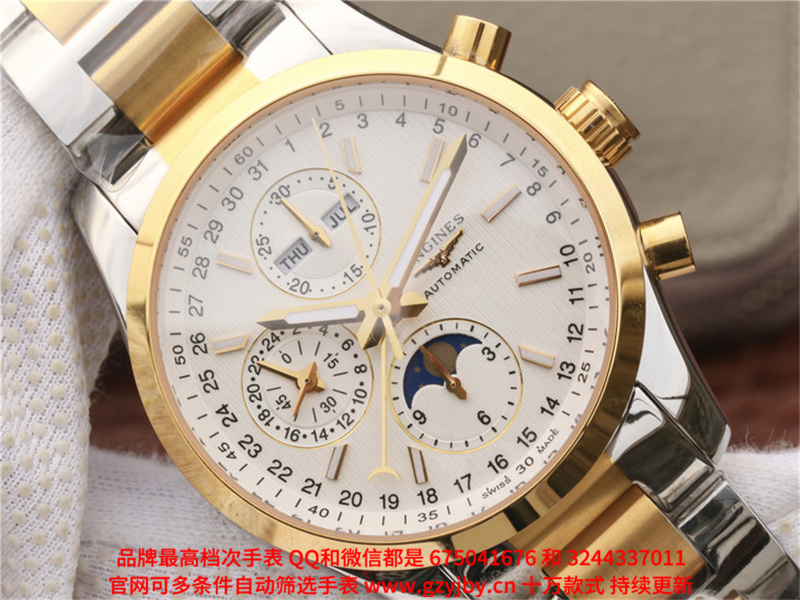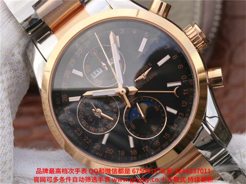 ALS24 一比一复刻 浪琴 康铂系列 男 全自动械表 日历星期 月份 月相 24小时制 跑秒计时