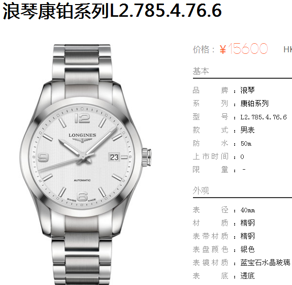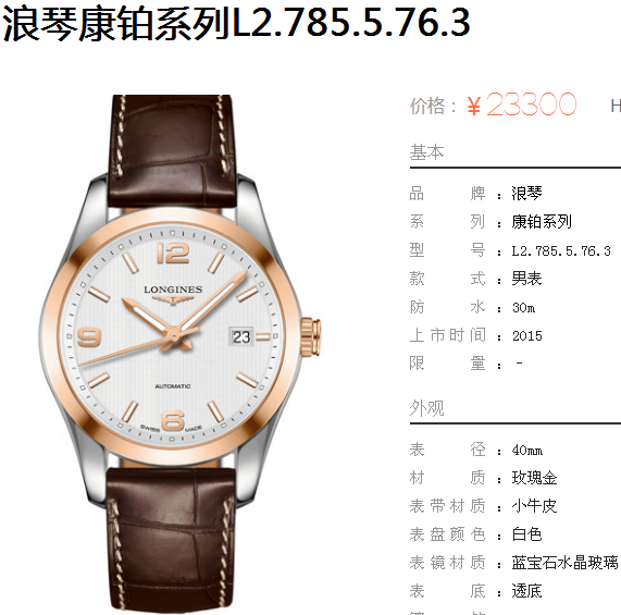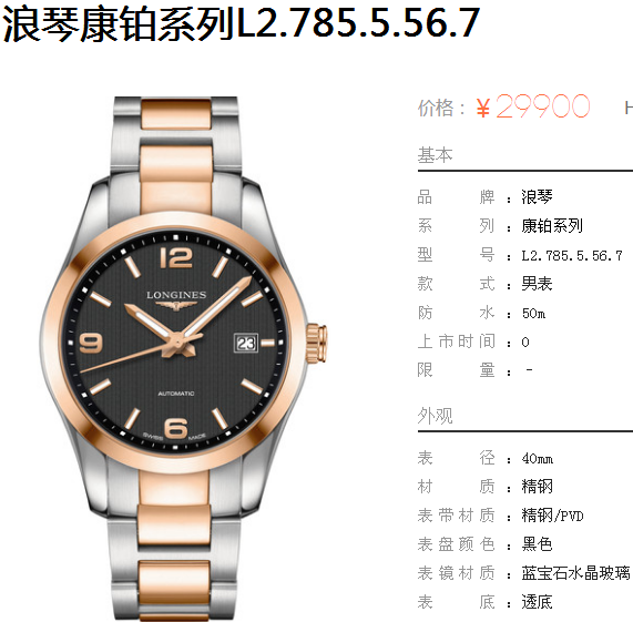 白1700金加100,浪琴康铂系列,男 全自动械表,直径40厚11毫米,日历,夜光。采用仿瑞士机芯Cal.619.2,前后蓝宝石镜面,精钢表壳,钢带或者皮带,防水50米,带全套高档包装发票鉴定书等等,包邮,保修5年,质量可靠。如需深入了解,请带图咨询客服。提供专业参考意见!