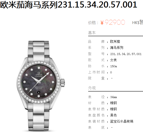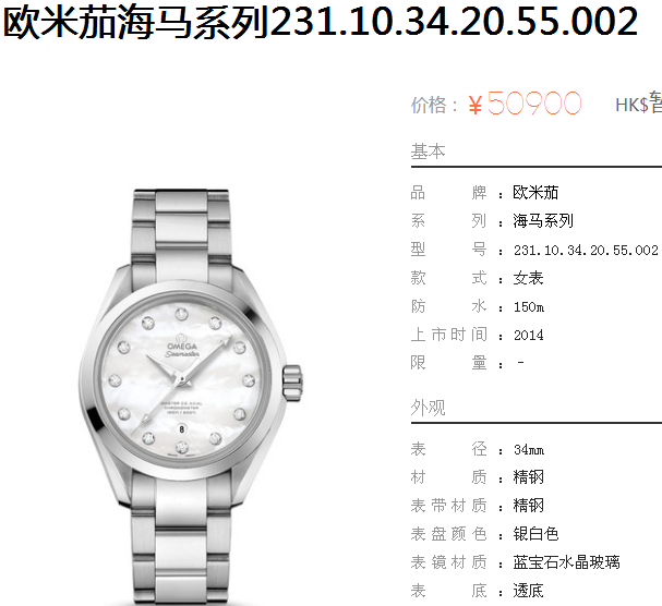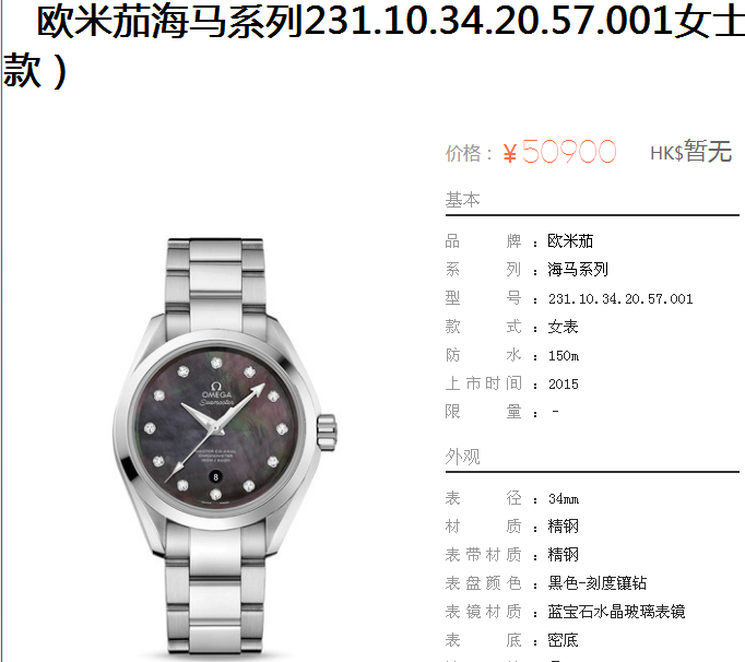AOA035 一比一复刻 欧米茄 海马系列 女 全自动机械 日历 夜光