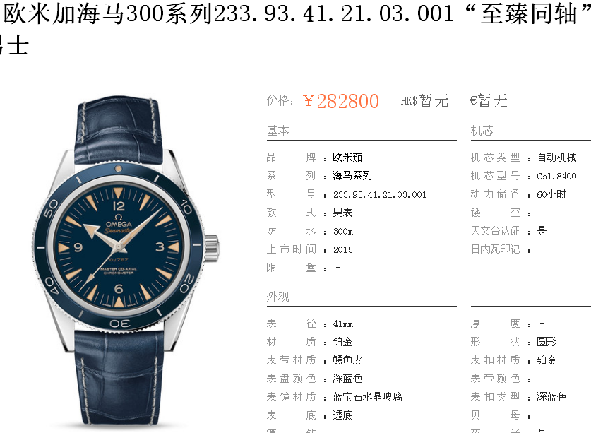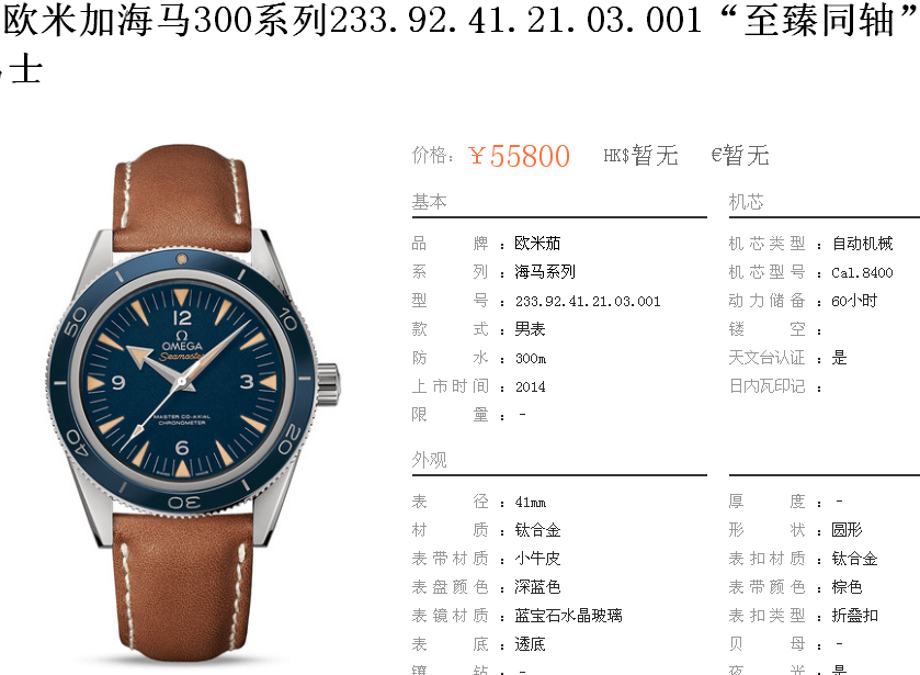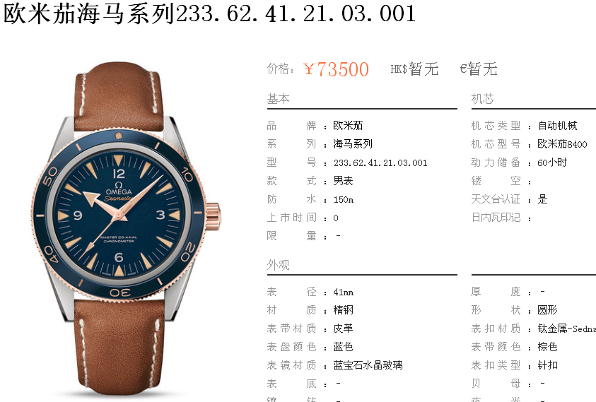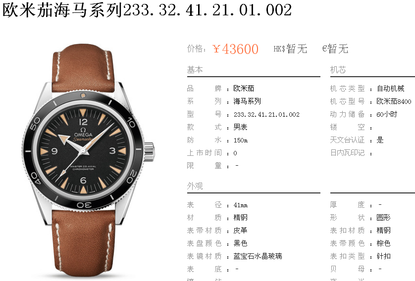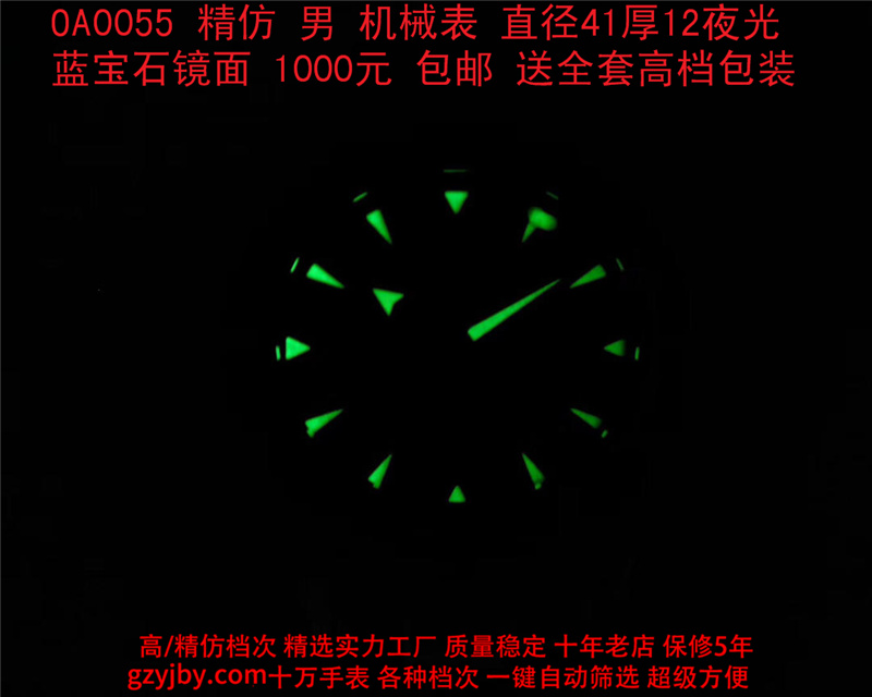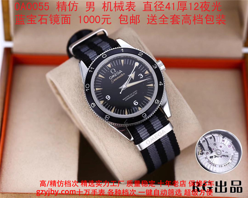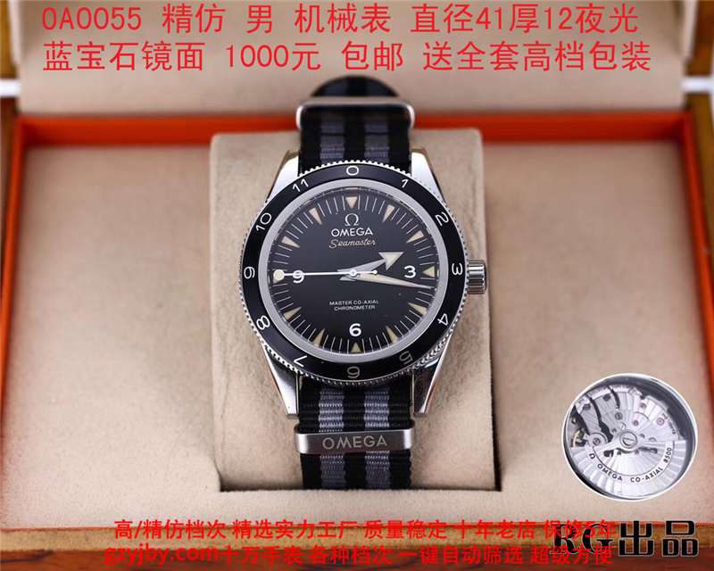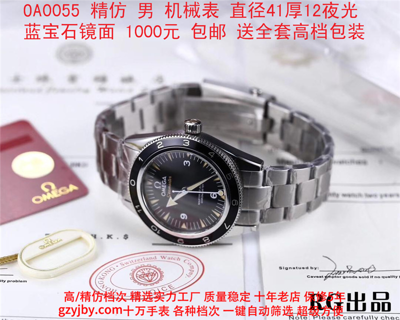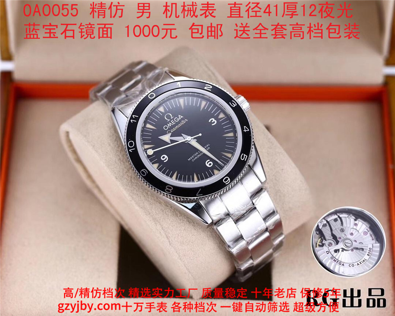 1000/个......OA0055 (正品同款 超精防 低配复刻) 欧米茄精防海马系列,男 全自动机械表, 直径41厚12毫米,夜光, 采用瑞士进口防机,蓝宝石镜面,精钢表壳,钢带或者布带, 带全套高档包装发票鉴定书等等,包邮。保修5年,质量可靠。 如需深入了解,请带图咨询客服。 (特别注意:此款手表虽然是精防档次,但是他的表壳做工非常好,表壳表带的做工都比普通67百元的更好,字面也非常逼真,外观上来看已经仿真度非常高,所以很多微商个人卖家经常拿这个表冒充一比一手表来卖,以次充好!有很多不懂表的就比较容易上当!虽然这个精防质量仿真也非常不错,但是毕竟一分钱一分货,是比不过一比一档次手表的!) )