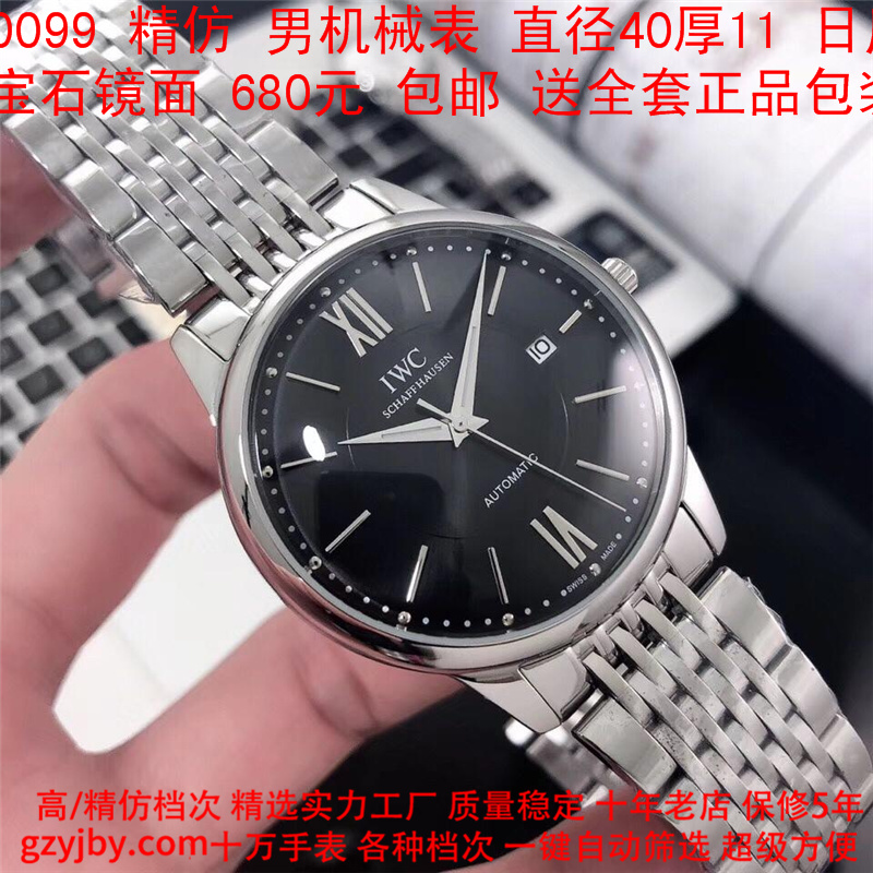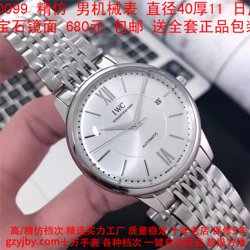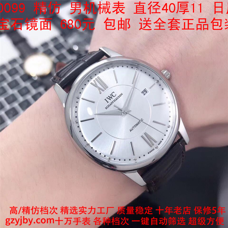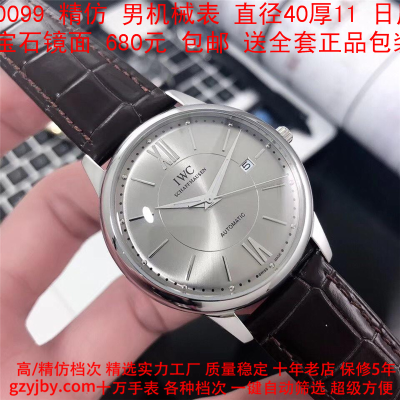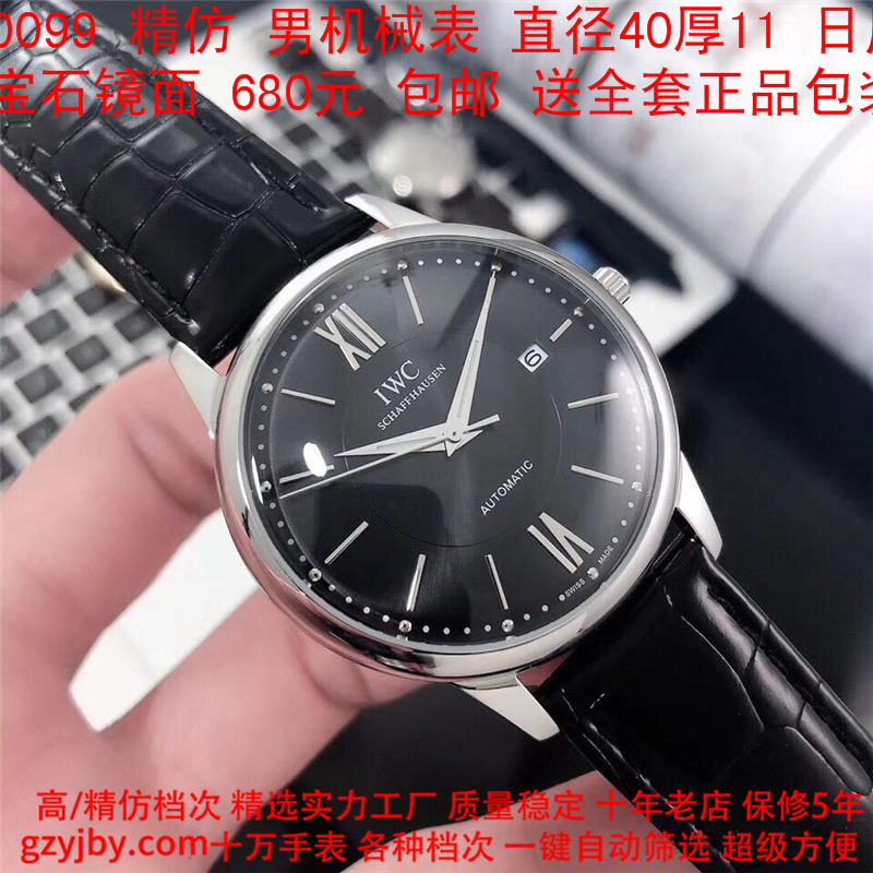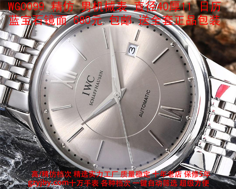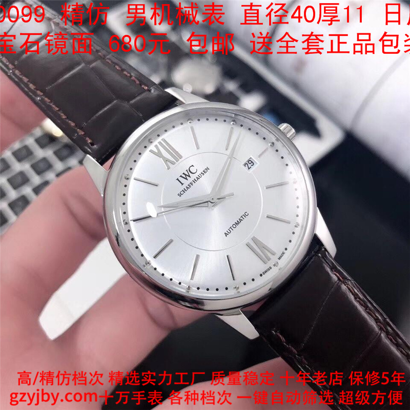 680/个......WG0099 (暴款) 万国精防 柏涛菲诺系列,男全自动机械表, 直径40厚11毫米,日历, 采用瑞士进口防机,蓝宝石镜面,精钢表壳,皮带, 带全套正品包装发票鉴定书等等,包邮。保修5年,质量可靠。 如需深入了解,请带图咨询客服。 )
