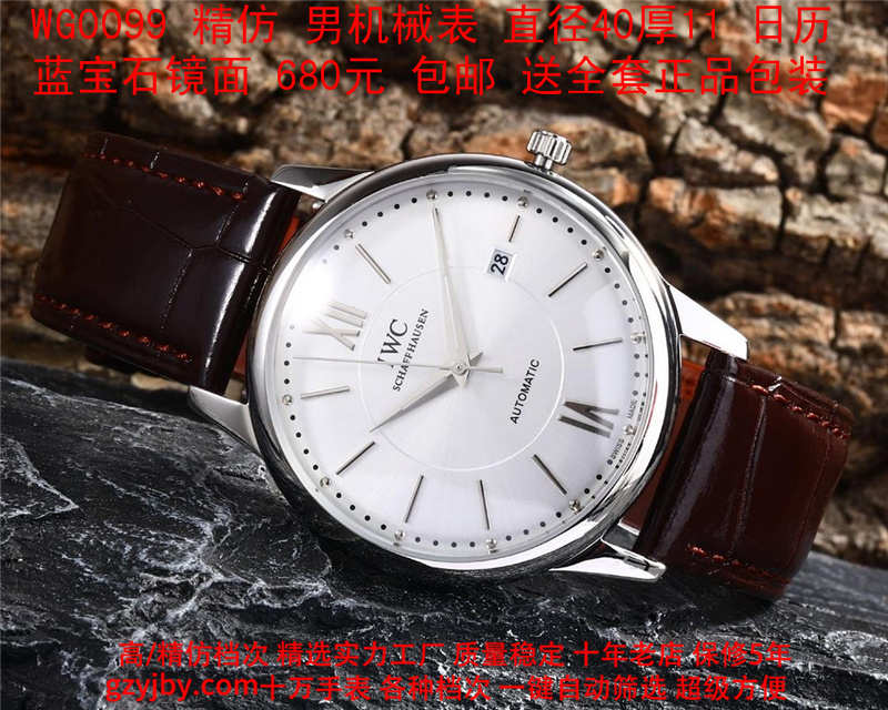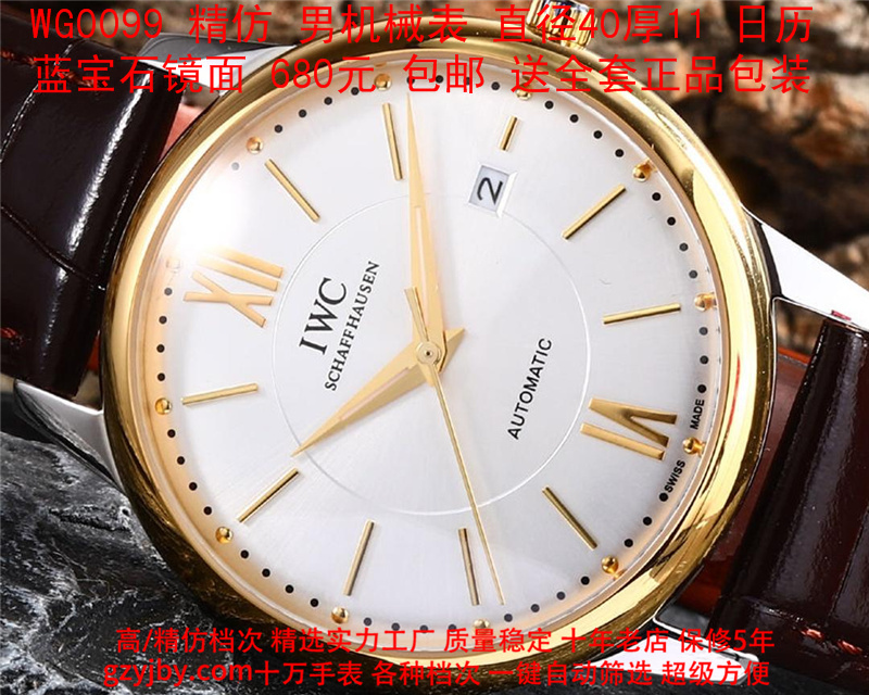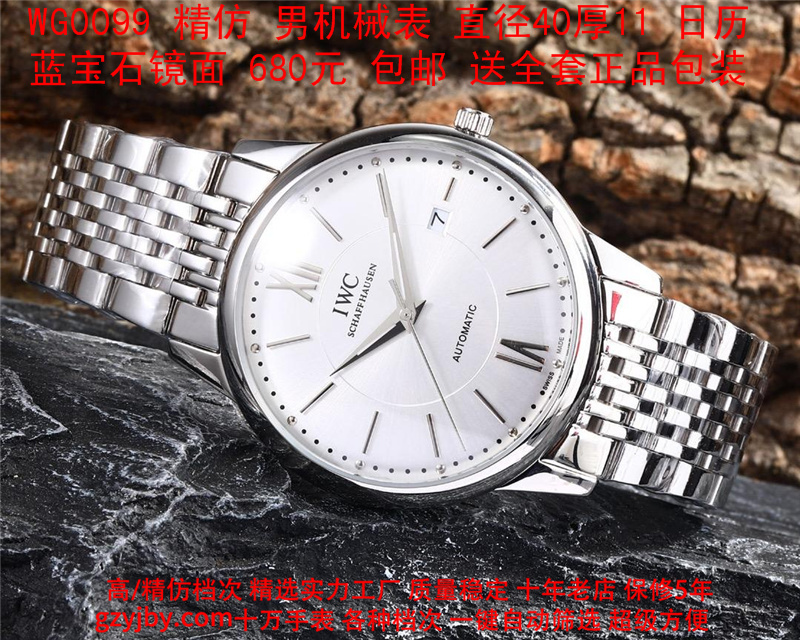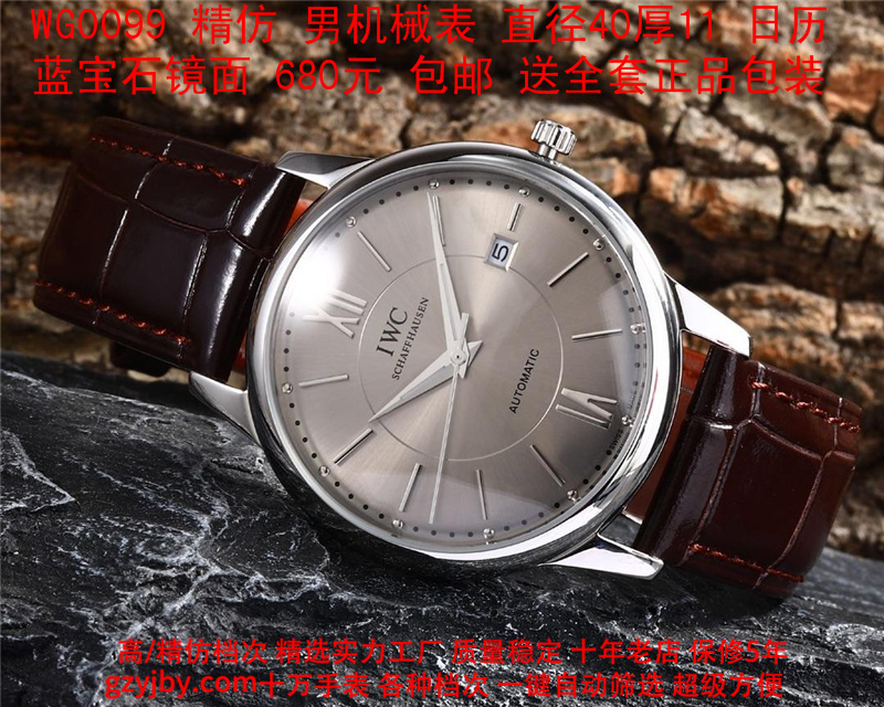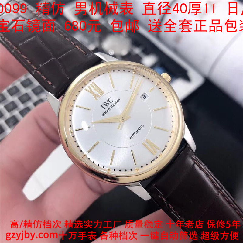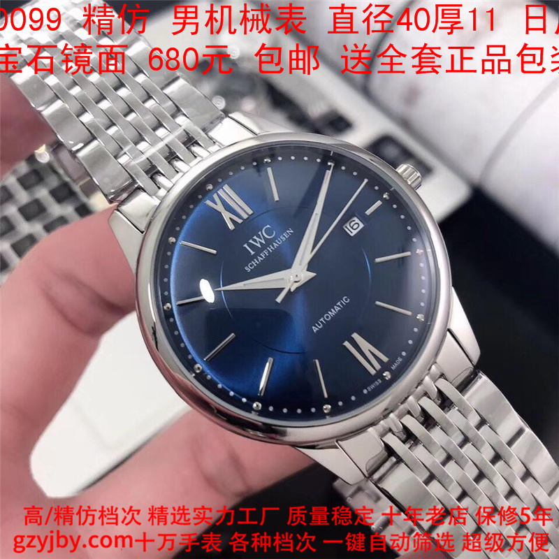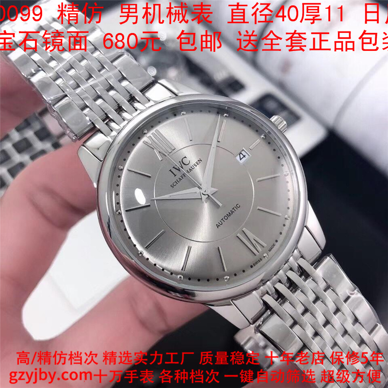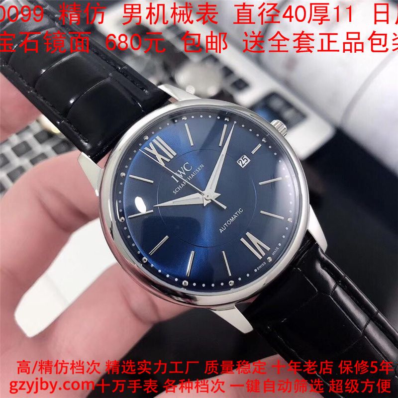 680/个......WG0099 (暴款) 万国精防 柏涛菲诺系列,男全自动机械表, 直径40厚11毫米,日历, 采用瑞士进口防机,蓝宝石镜面,精钢表壳,皮带, 带全套正品包装发票鉴定书等等,包邮。保修5年,质量可靠。 如需深入了解,请带图咨询客服。 )