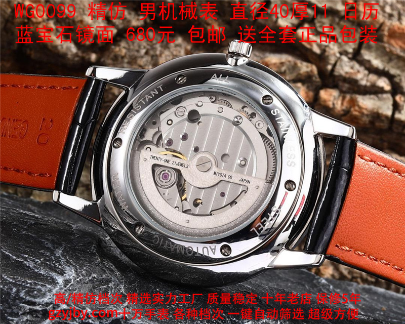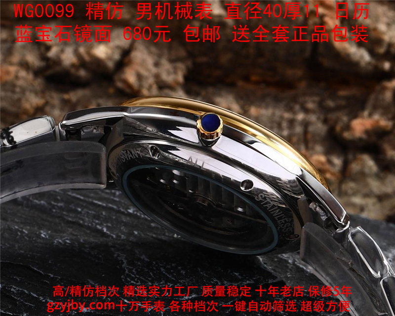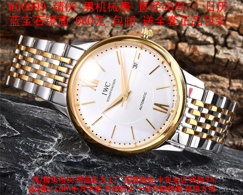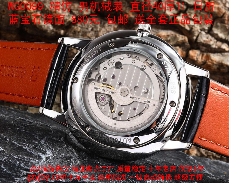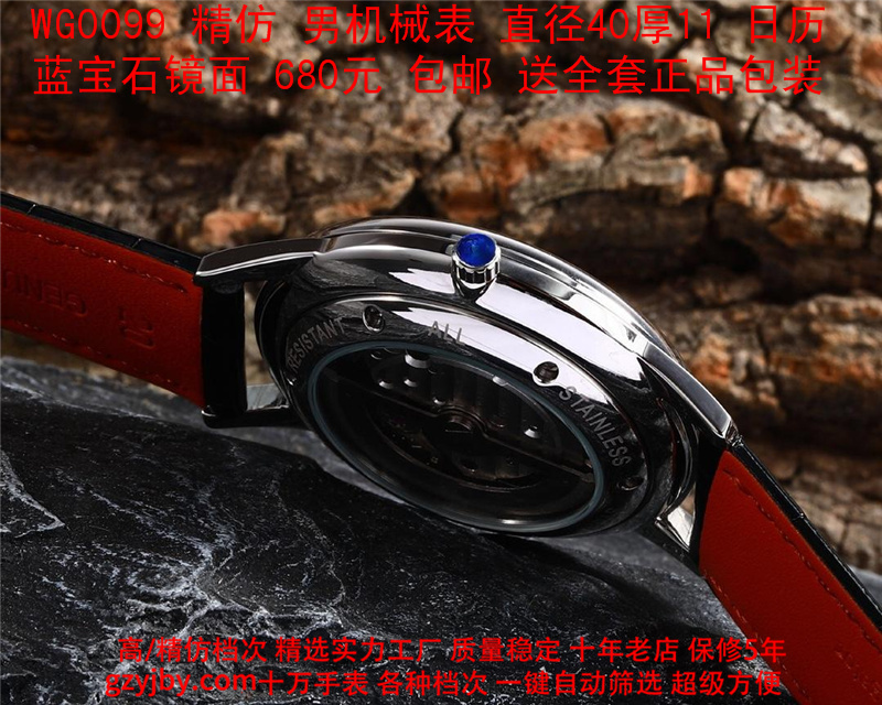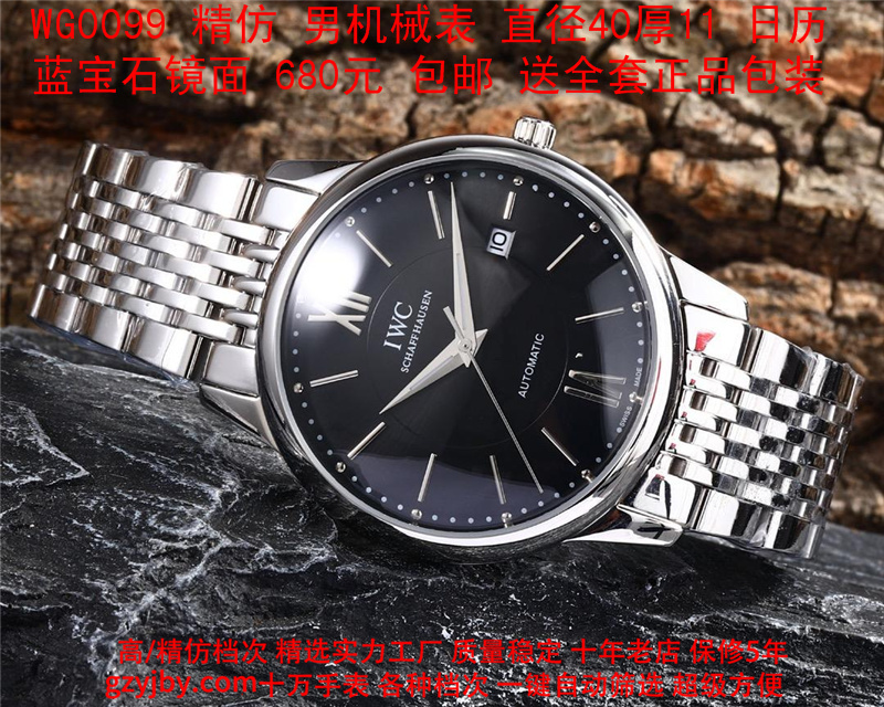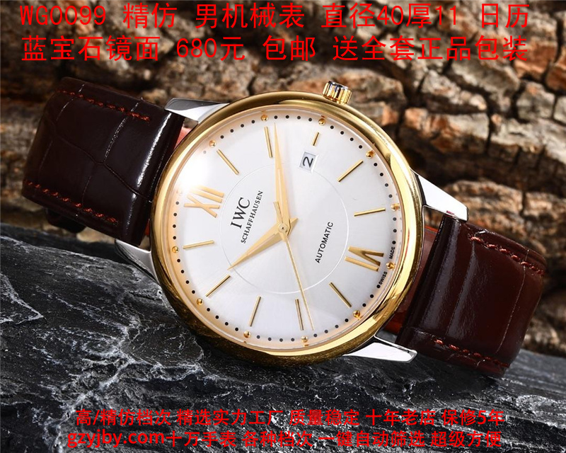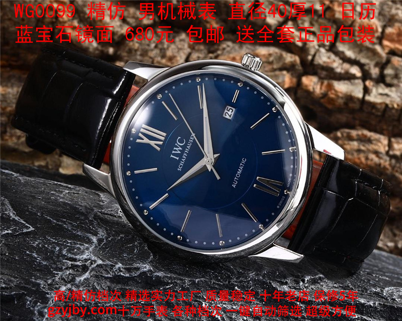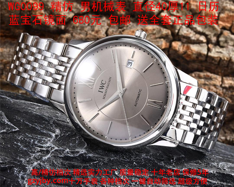 680/个......WG0099 (暴款) 万国精防 柏涛菲诺系列,男全自动机械表, 直径40厚11毫米,日历, 采用瑞士进口防机,蓝宝石镜面,精钢表壳,皮带, 带全套正品包装发票鉴定书等等,包邮。保修5年,质量可靠。 如需深入了解,请带图咨询客服。 )